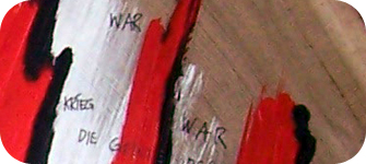 nennt Alexander Janda, der ein Gründungsmitglied des Kunstprojektes R-STRIPES ist, die Baumscheibe und setzt so ein Zeichen für eine kriegsfreie Welt. Der Baumscheibe liegt eine 14-seitige Auflistung der Hauptkriege seit 1400 v.Chr. bei. Die Baumscheibe ist mit hochwertiger Acrylfarbe und Kohle bemalt, einzeln ausgewählte Kriege werden durch Punkte und gebrauchte Platzpatronen hervorgehoben. Zur Zeit ist die Baumscheibe auf Wanderausstellung im In- und Ausland zu sehen. Betrachter sind herzlich dazu eingeladen, einen Kohle-Fingerabdruck auf einem beigefügten Sammelblatt zu hinterlassen.